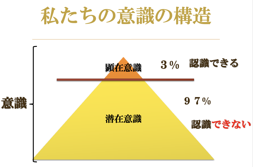 なぜなら、潜在意識は通常では自覚できない無意識の領域だからです。